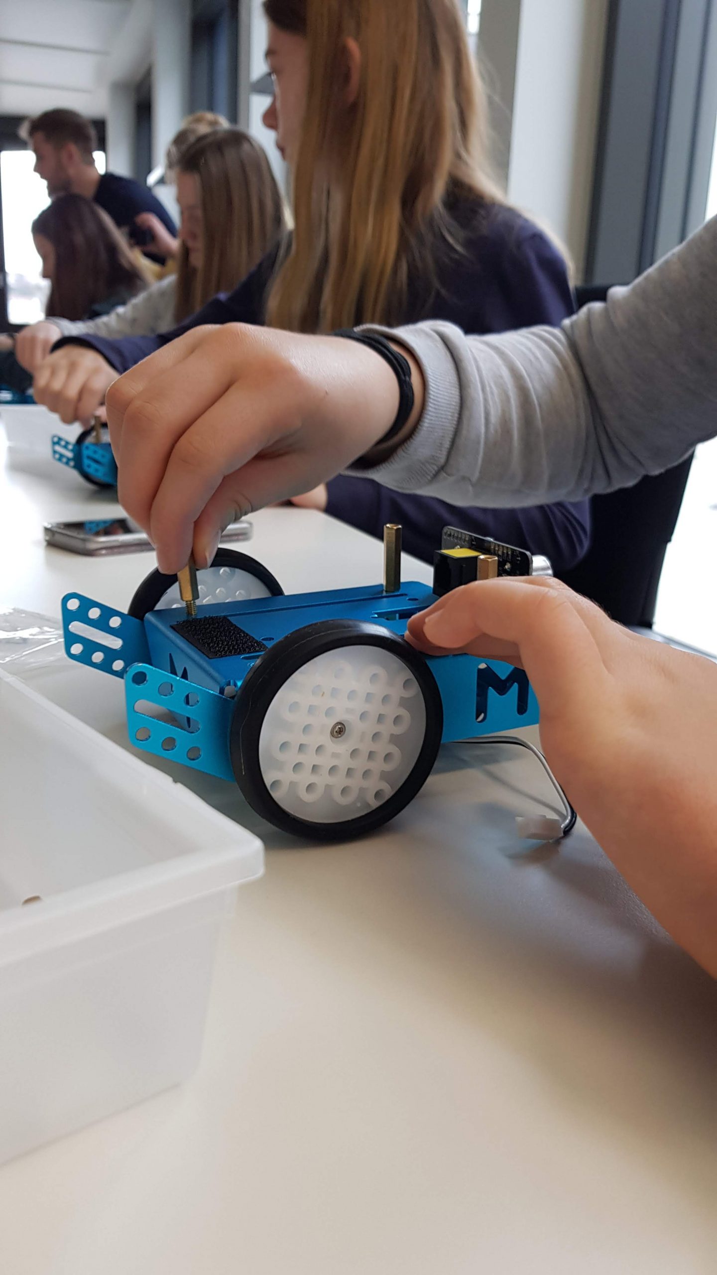 - individuelle Montage eines Roboters durch jeden Teilnehmer und